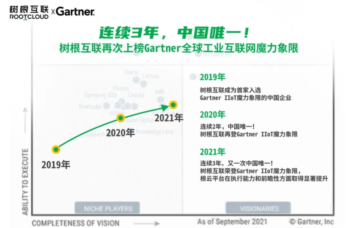自2016年成立至今,短短5年内,树根科技股份有限公司(以下简称“树根科技”)发展迅猛。2016年12月,树根科技发布1.0版本的工业互联网平台——ROOTCLOUD(根云);2018年,树根科技落户广州;2019年至2021年,树根科技连续3年入选国际咨询公司Gartner《全球工业互联网平台魔力象限报告》,是目前唯一一家入选的中国工业互联网平台公司,2019年至2020年,根云连续两年入选工信部的跨行业跨领域工业互联网平台(以下简称“双跨平台”),是目前全国15大双跨平台之一;2020年12月,树根科技完成C轮8.6亿元的融资,估值超11亿美元,成为中国工业互联网独角兽企业。